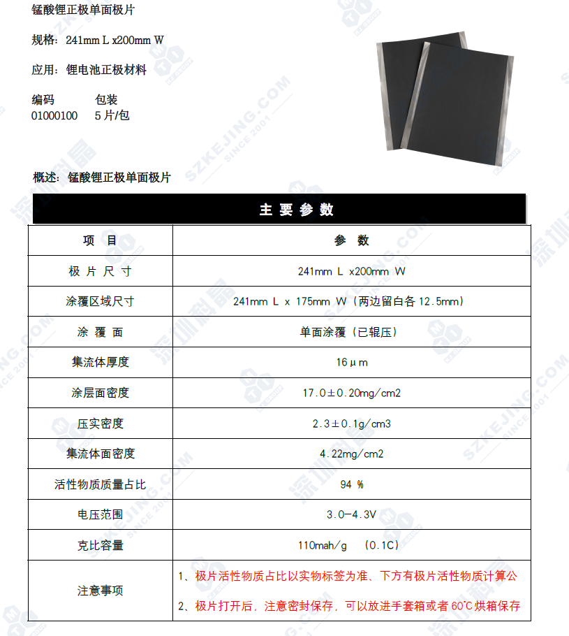 正极单面涂层 铝箔涂锰酸锂单面极片