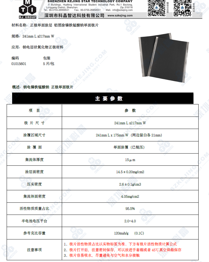 正极单面涂层 铝箔涂镍铁锰酸钠单面极片