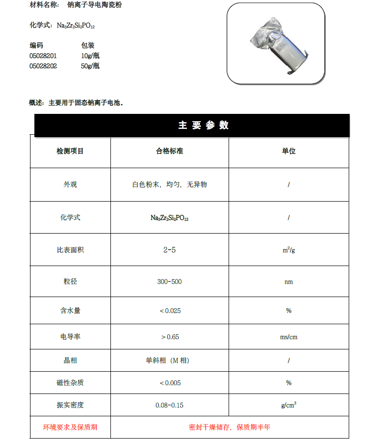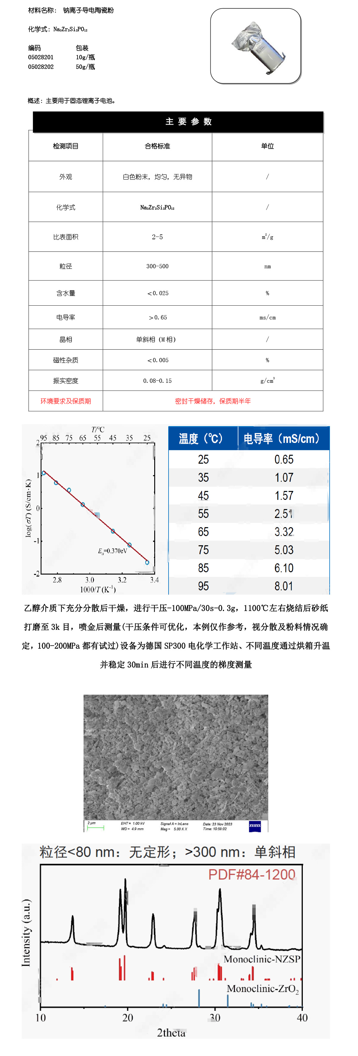 NZSPO钠离子固态电解质 300-500nm 科研级 深圳科晶