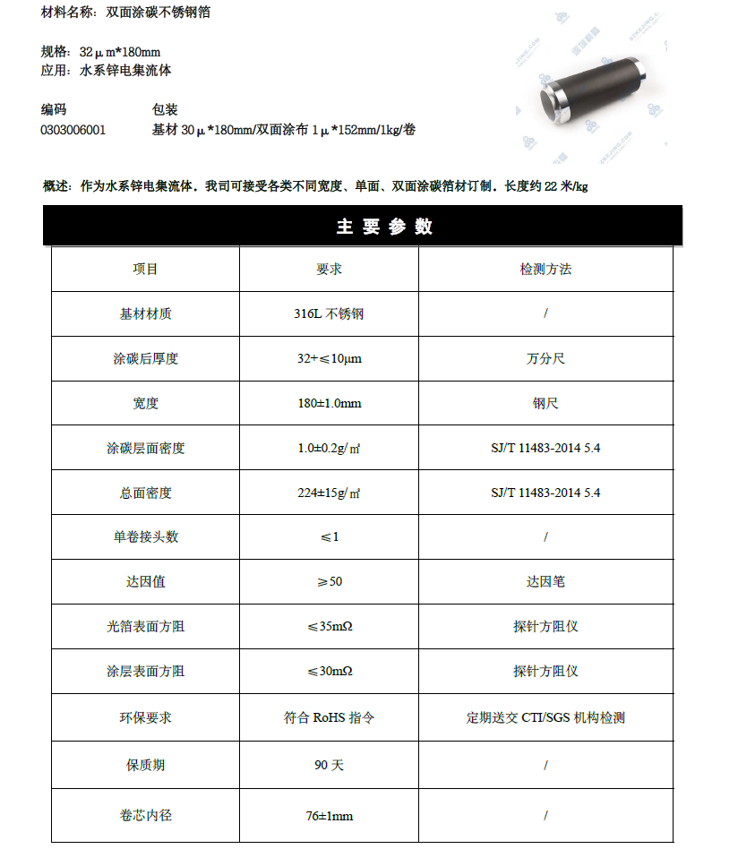 双面涂碳不锈钢箔 水系锌电用 316L不锈钢 深圳科晶
