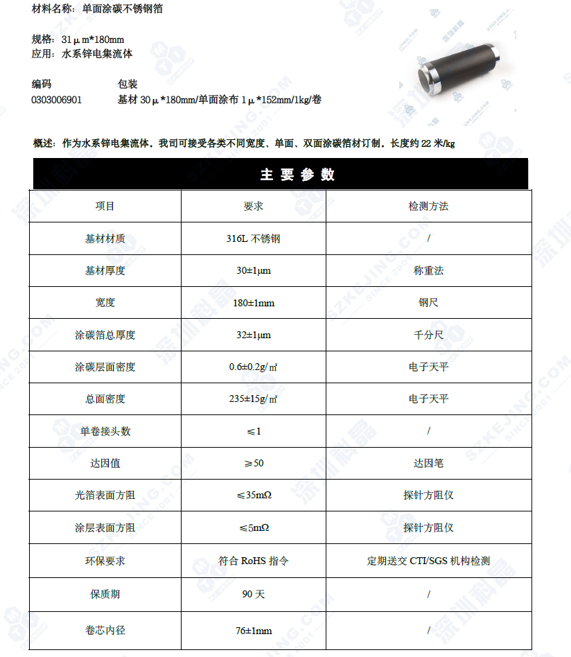 单/双面涂碳不锈钢箔 水系锌电用 316L不锈钢 深圳科晶