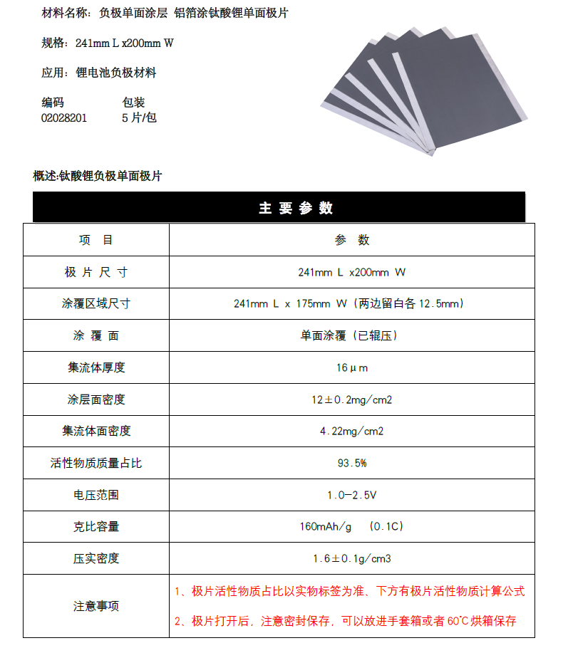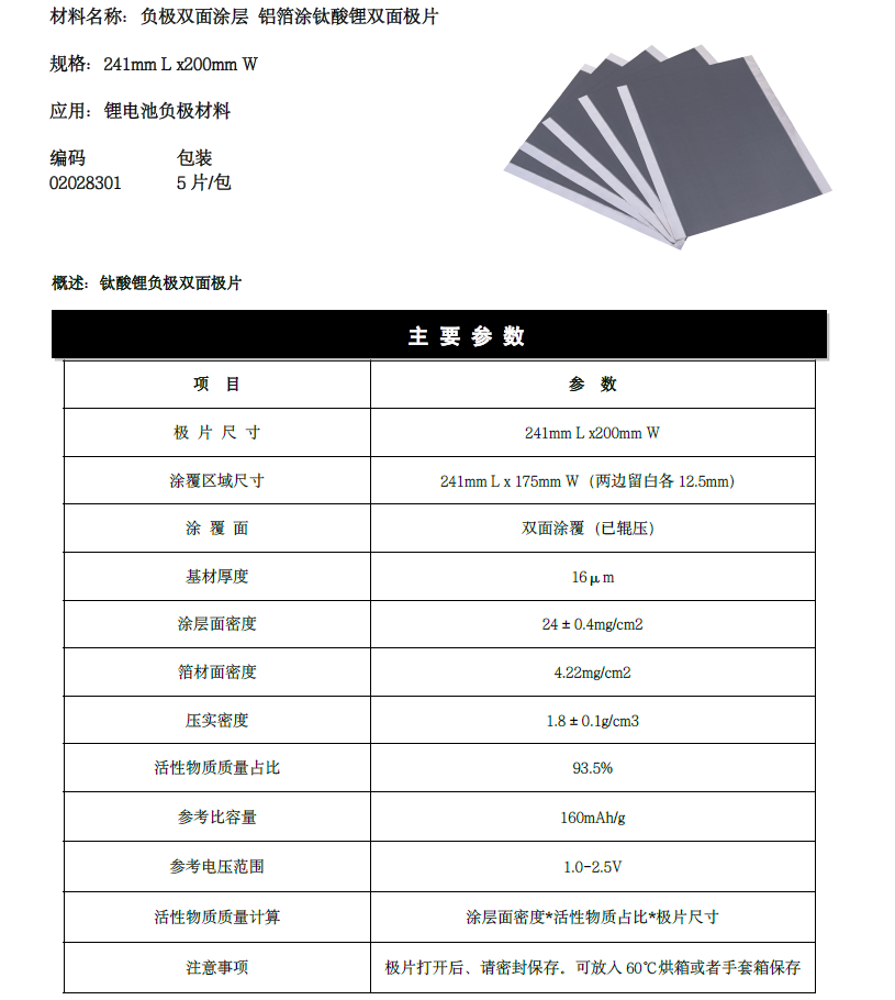 钛酸锂极片 LTO 铝箔涂钛酸锂单 双面极片 负极极片 深圳科晶