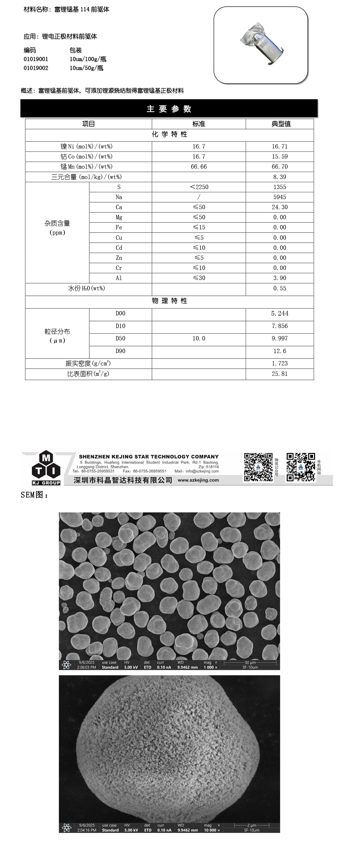 富锂锰基114前驱体 科研级 深圳科晶