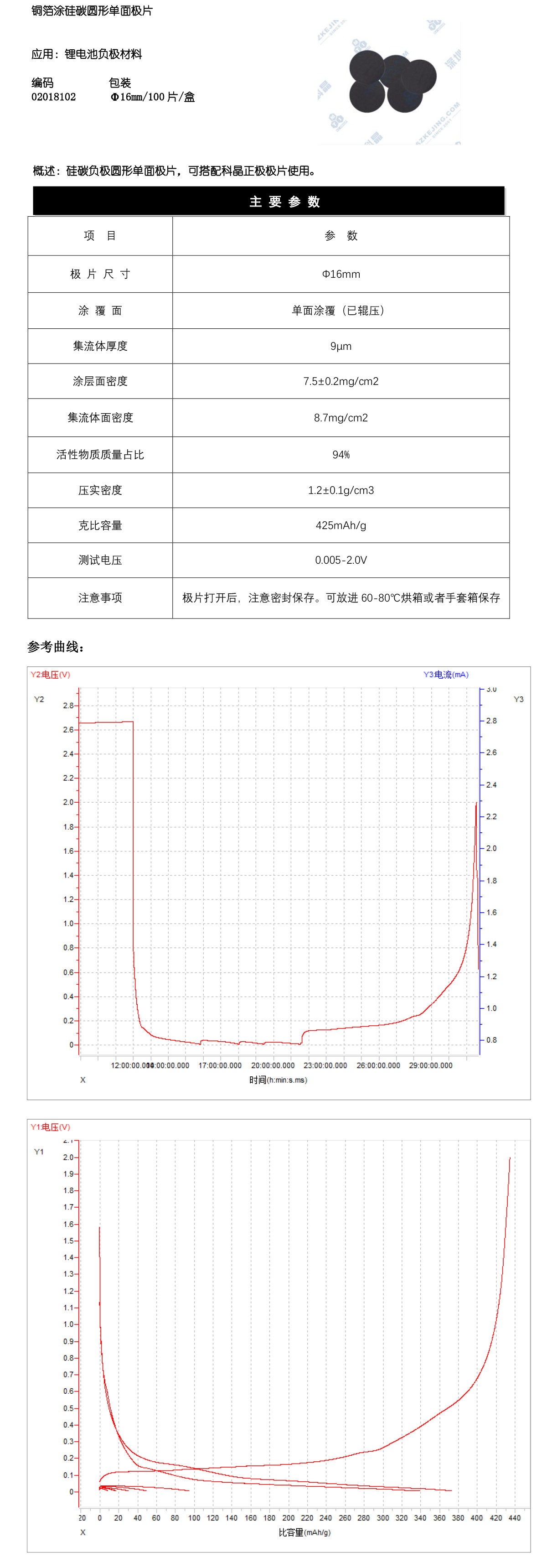 Si/C 硅碳极片圆片 Φ16mm 铜箔涂硅碳单面圆片 科研级 深圳科晶