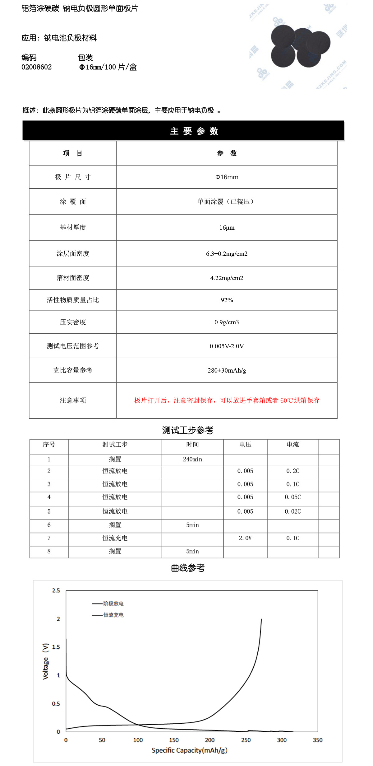 硬碳极片圆片 Φ16mm 铝箔涂硬碳单面圆片 科研级 深圳科晶