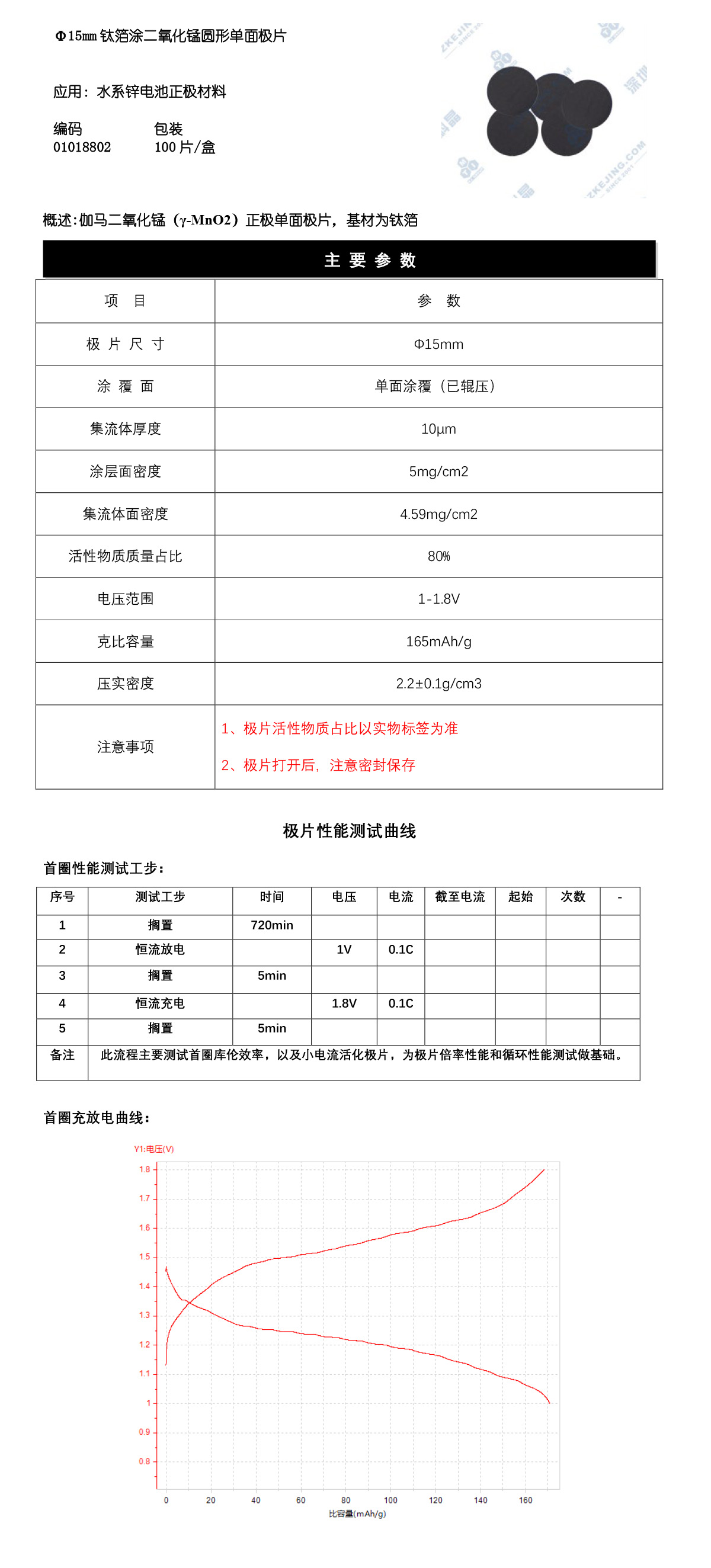 γ-MnO2极片圆片 Φ15mm钛箔涂伽马二氧化锰单面圆片 锌电 深圳科晶