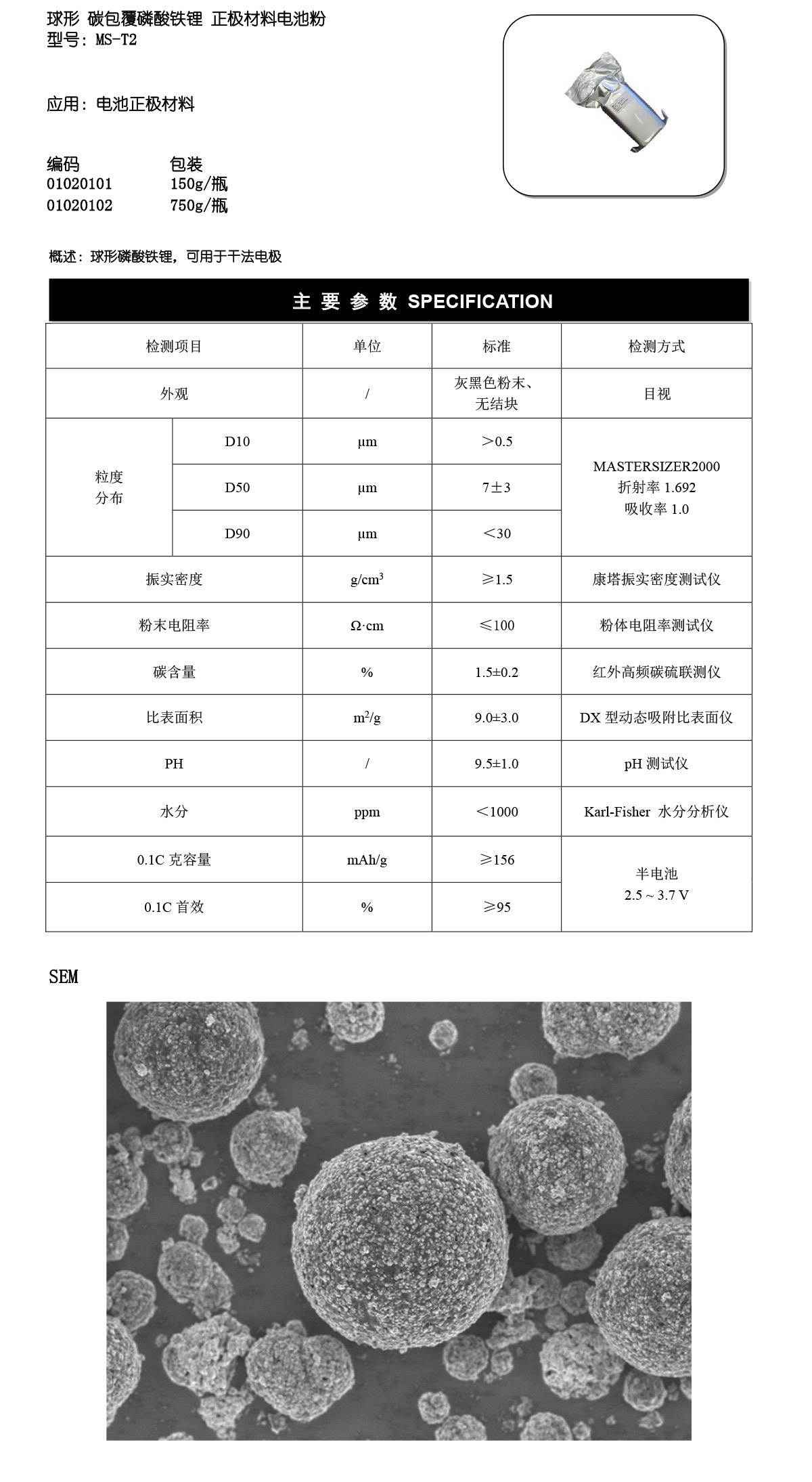 球形 磷酸铁锂正极材料 MS-T2 适用干法 科研级 深圳科晶 图片:黑色粉末